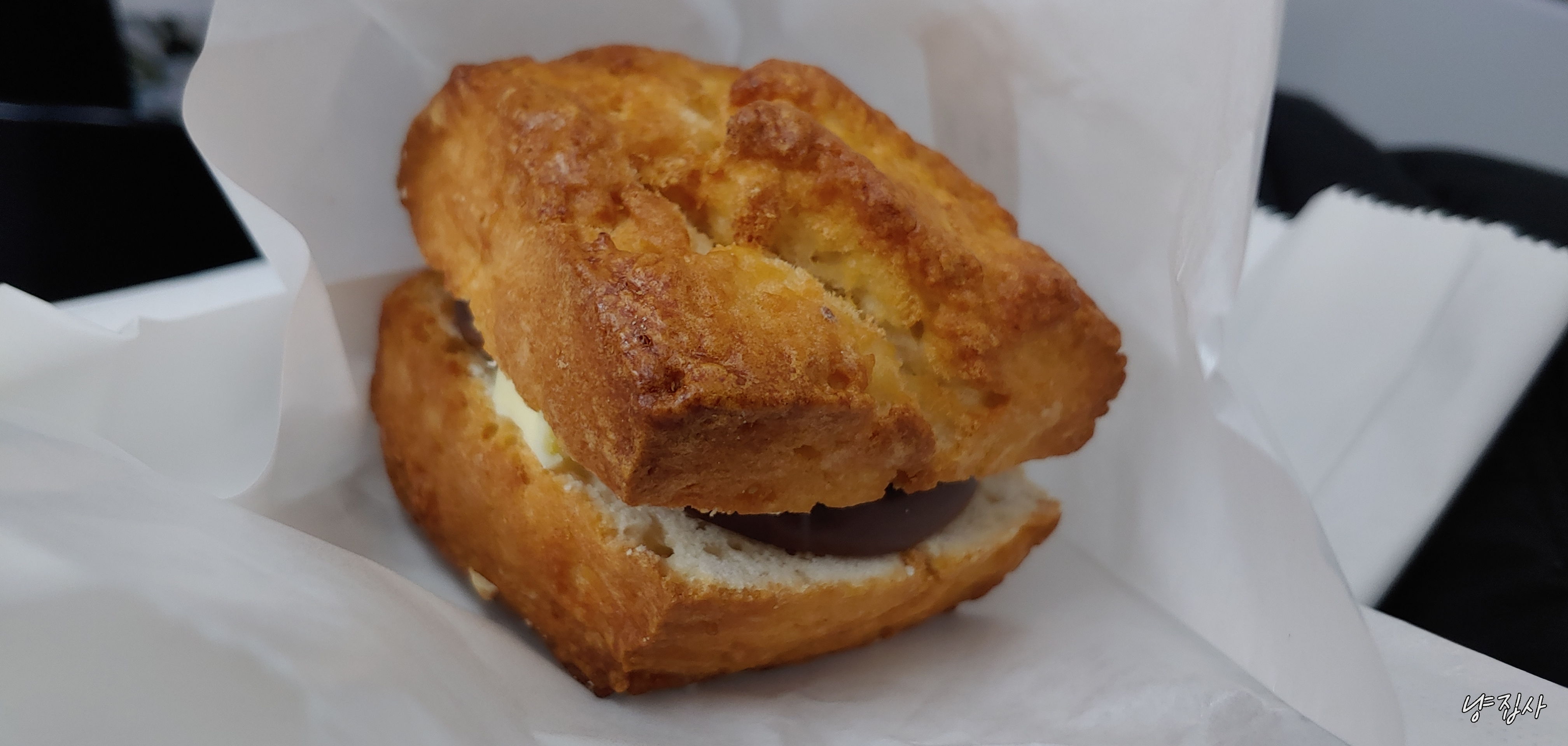 그냥 퍽퍽 빵... 거기에 느끼한 버터.. 그리고 잠시 오는 쵸코맛