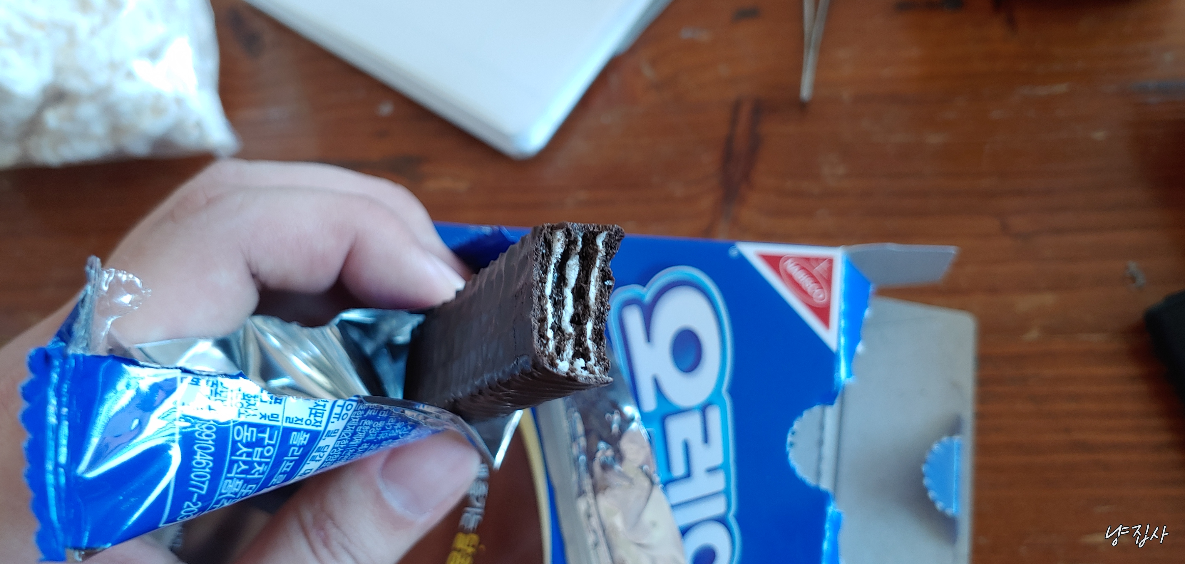 그런데 이 웨하스 스틱은 왜 오레오라는 이름을 붙였는지 모르겠다.