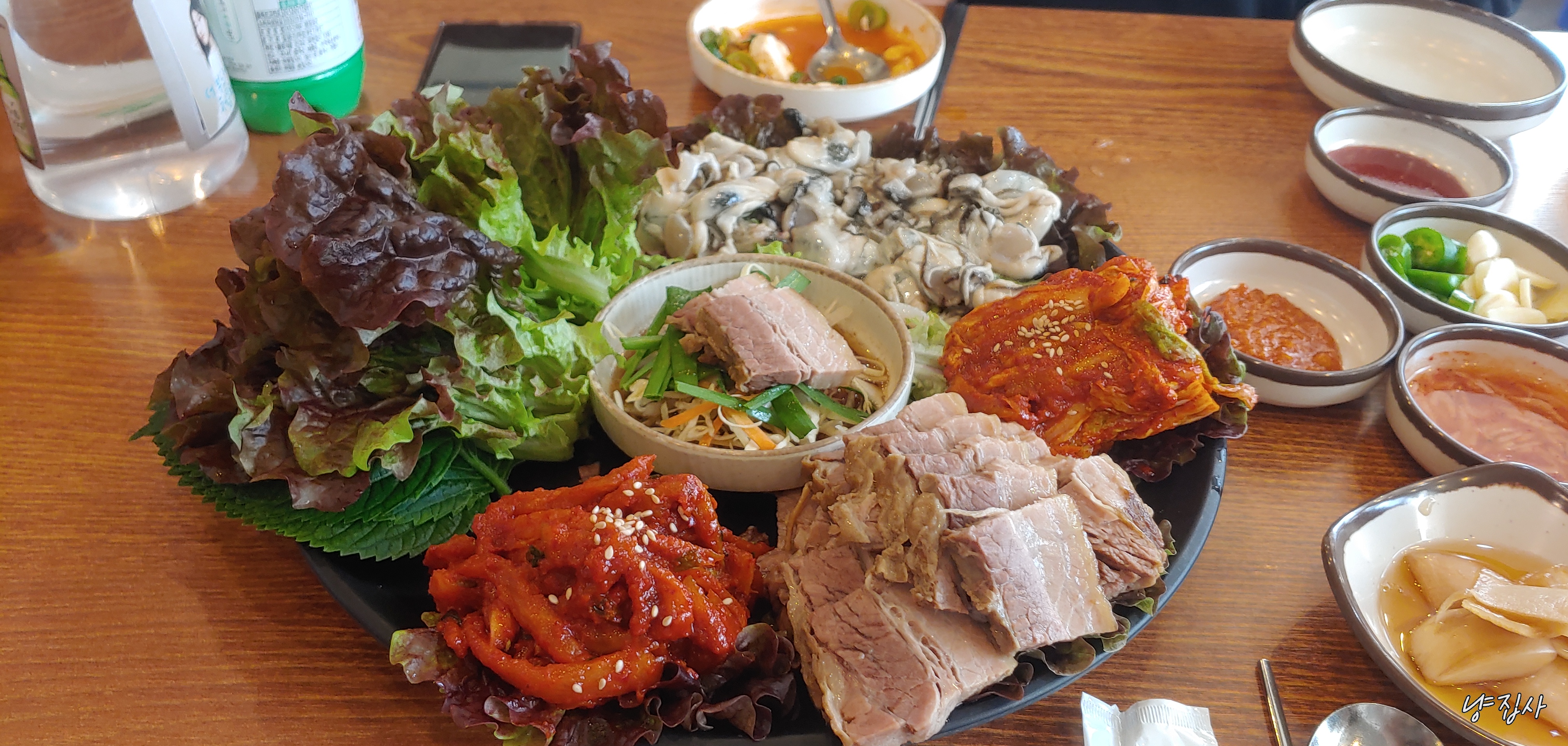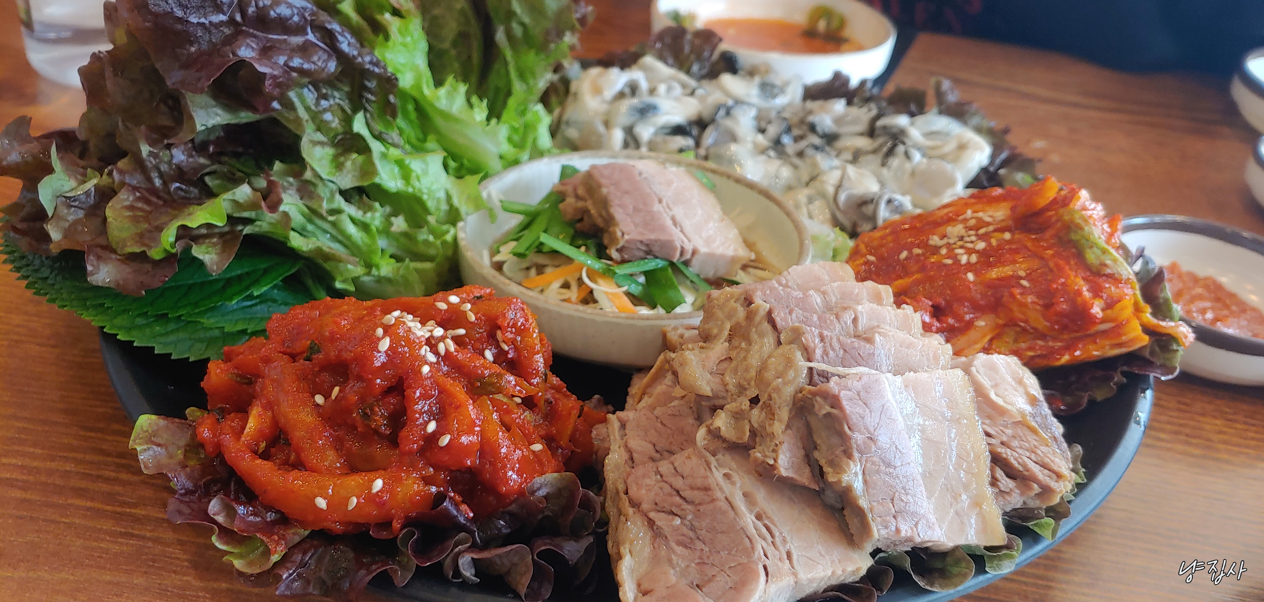 이강보쌈처럼 한판에 고기 김치 쌈채소 등과