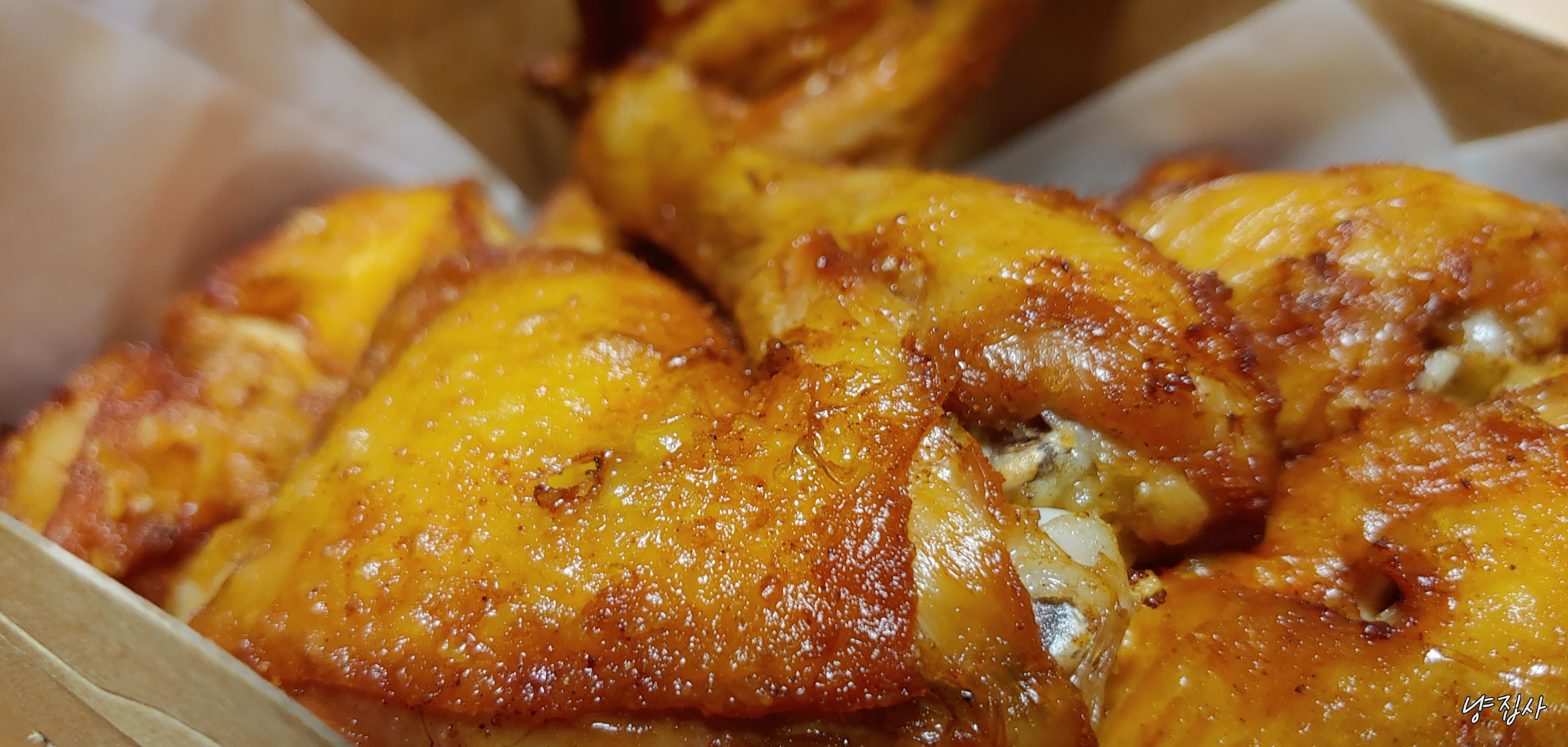 얇게 벗겨지는 튀김옷과 닭껍질은
