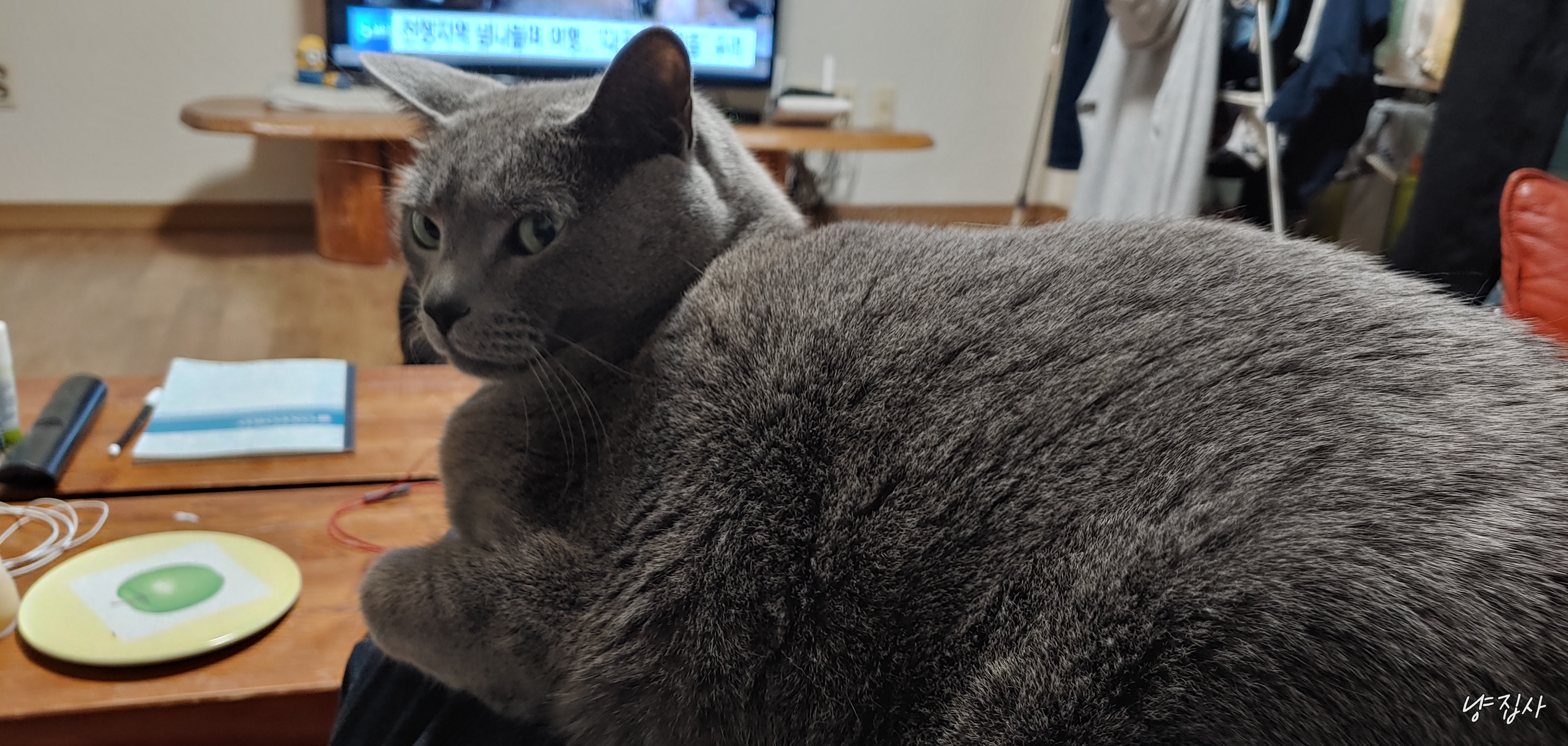 집사가 언제 쇼파에 앉나 보고 있다가