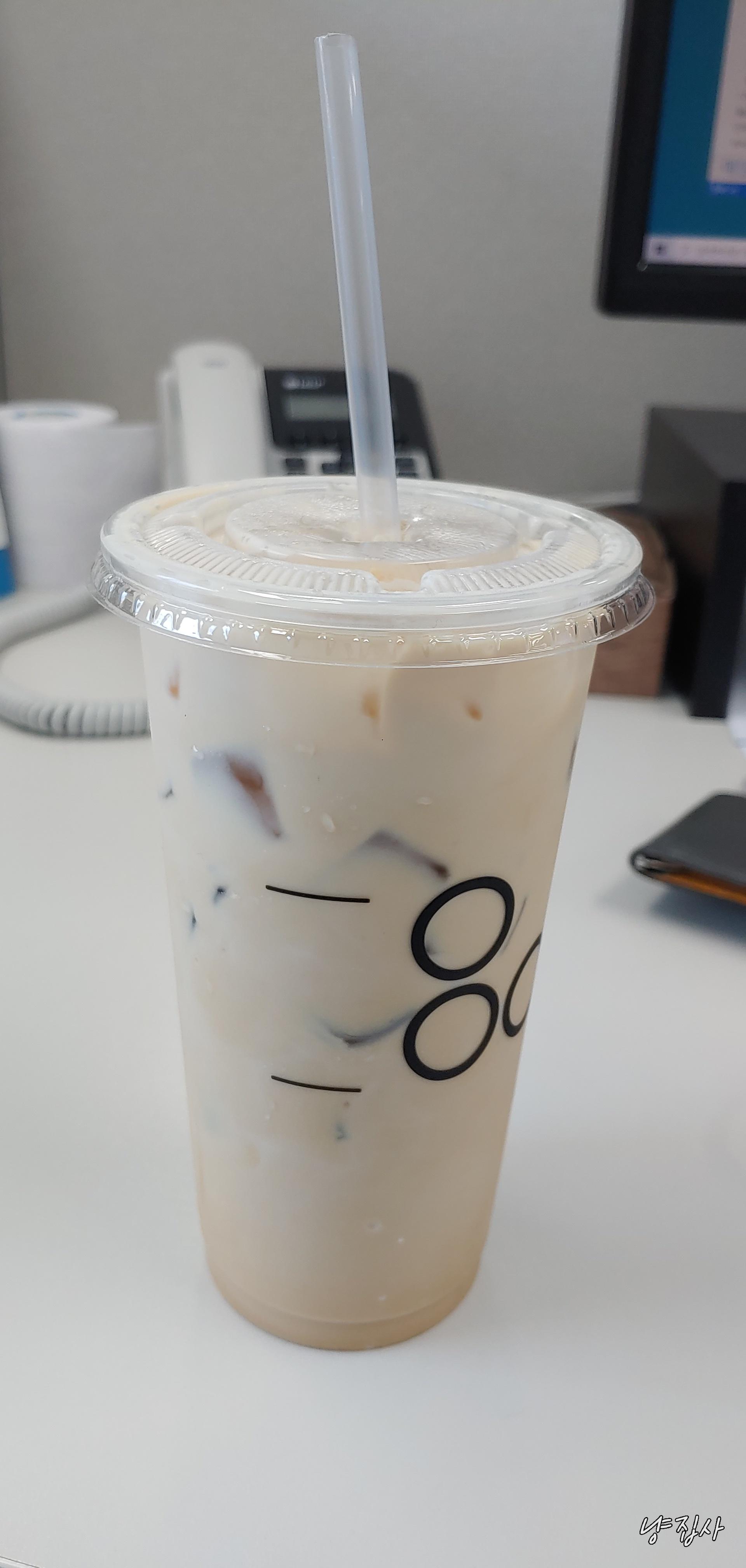 사이즈업 옵션까지 넣어 마시고 있다.