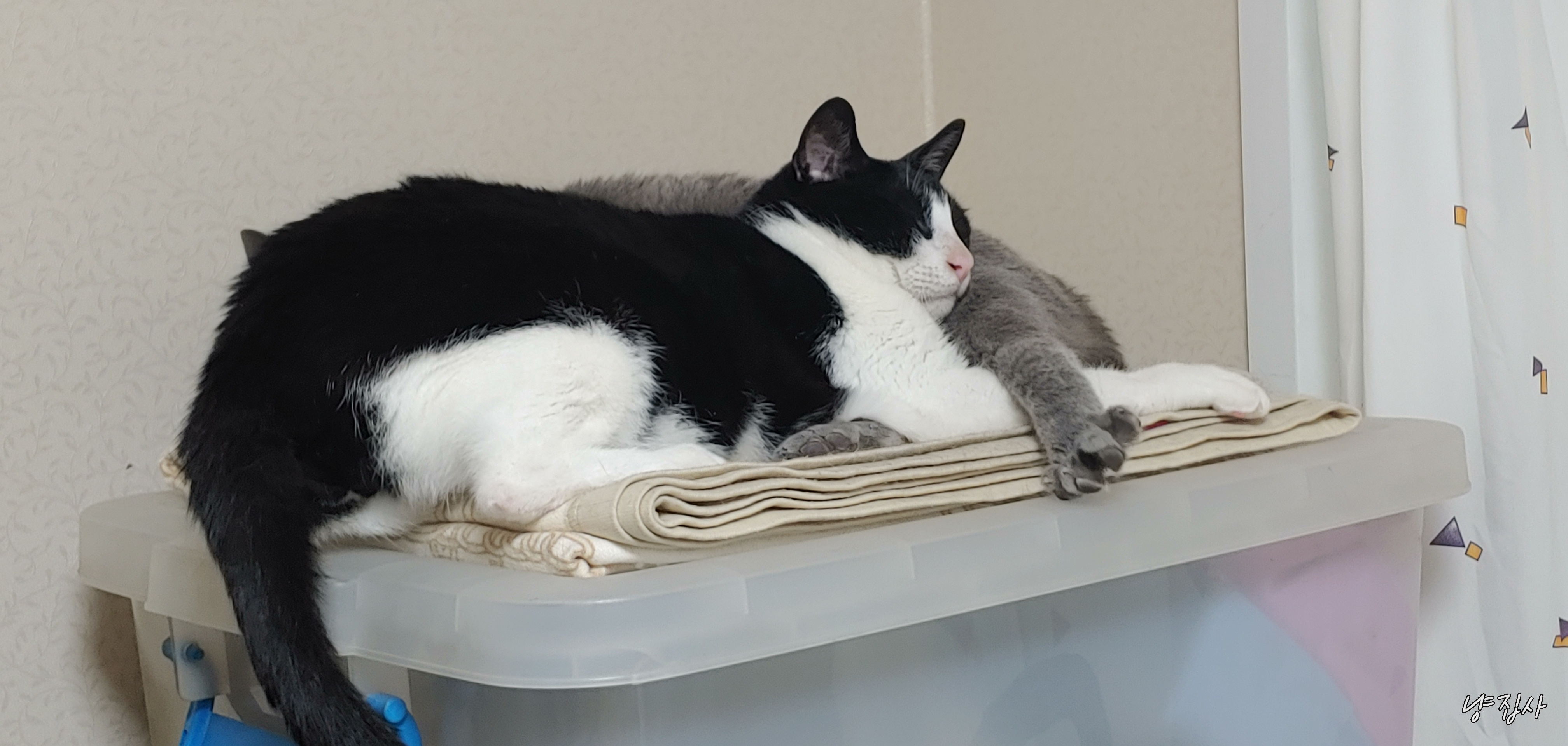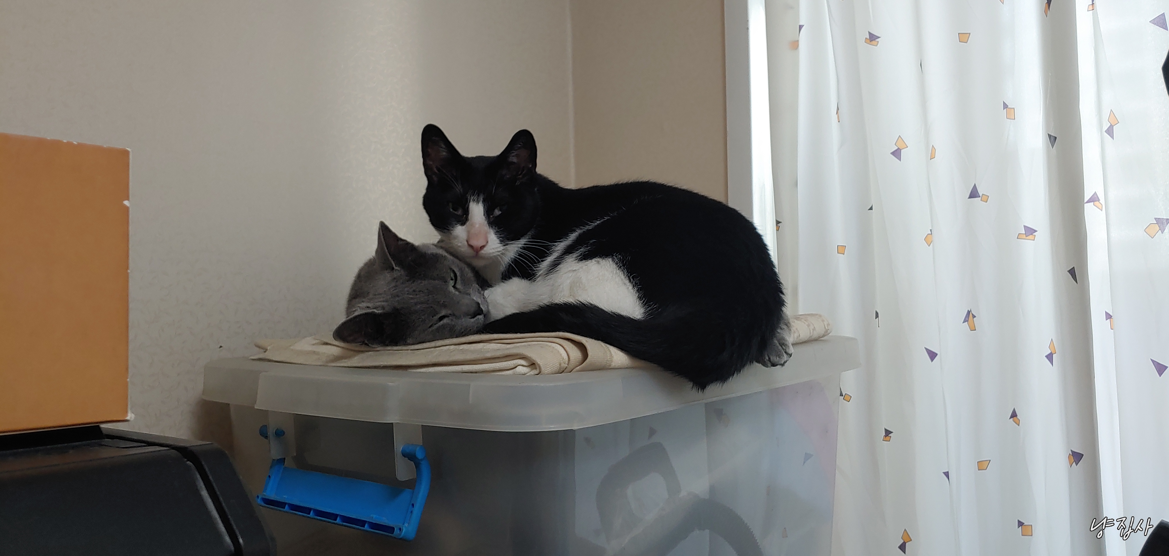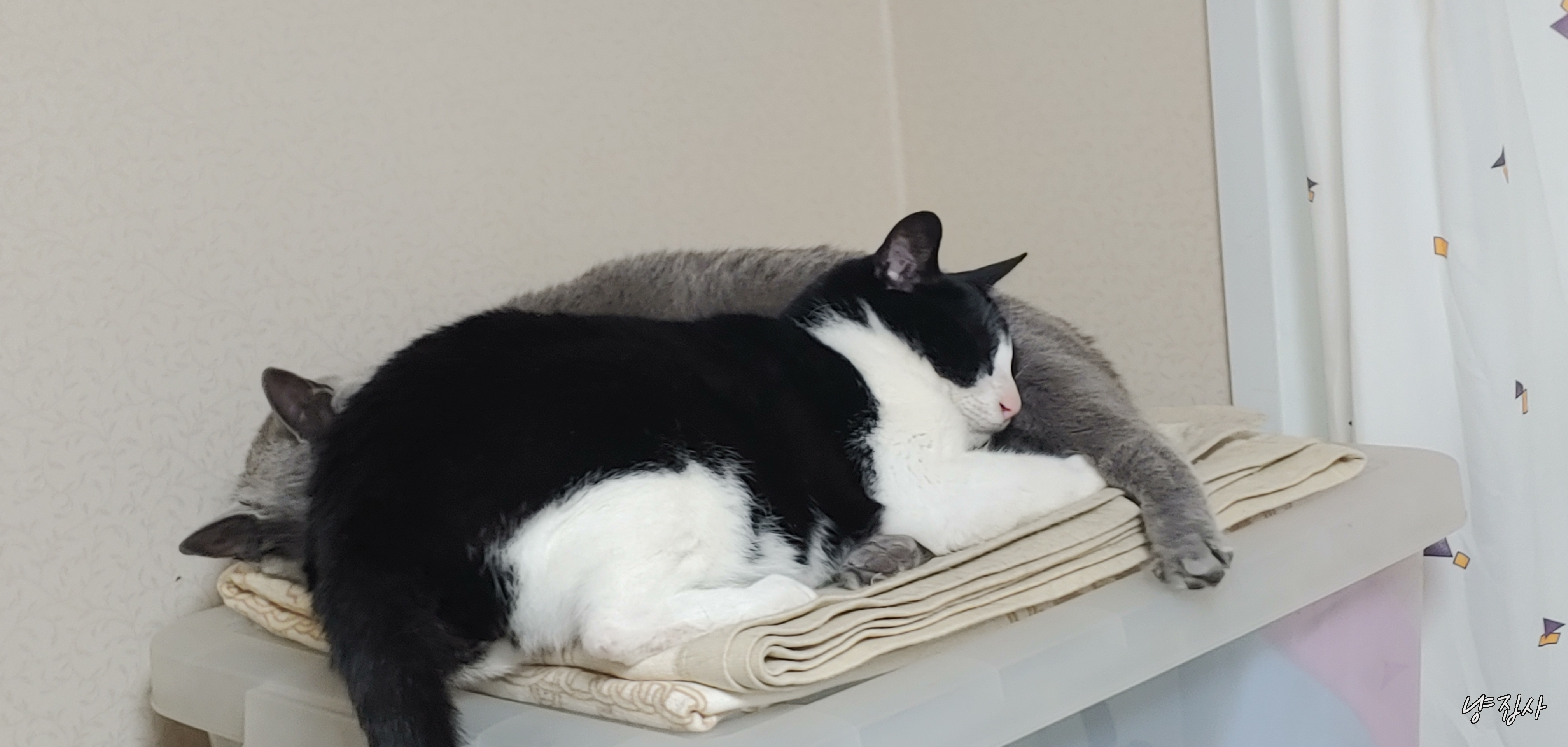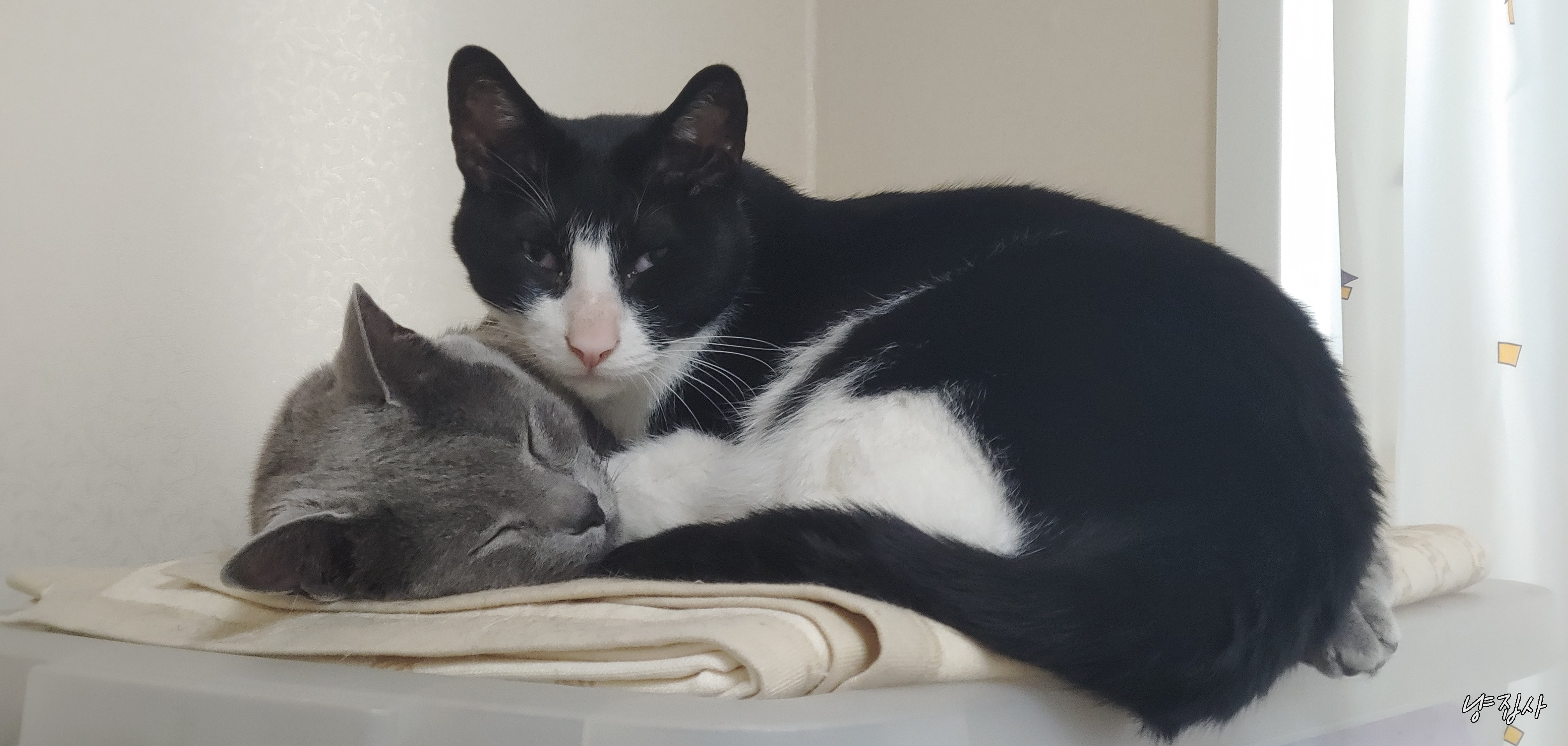 어떻게 2마리다 같은 공간에 털푸덕 누워서 생활하게 된 듯하다.