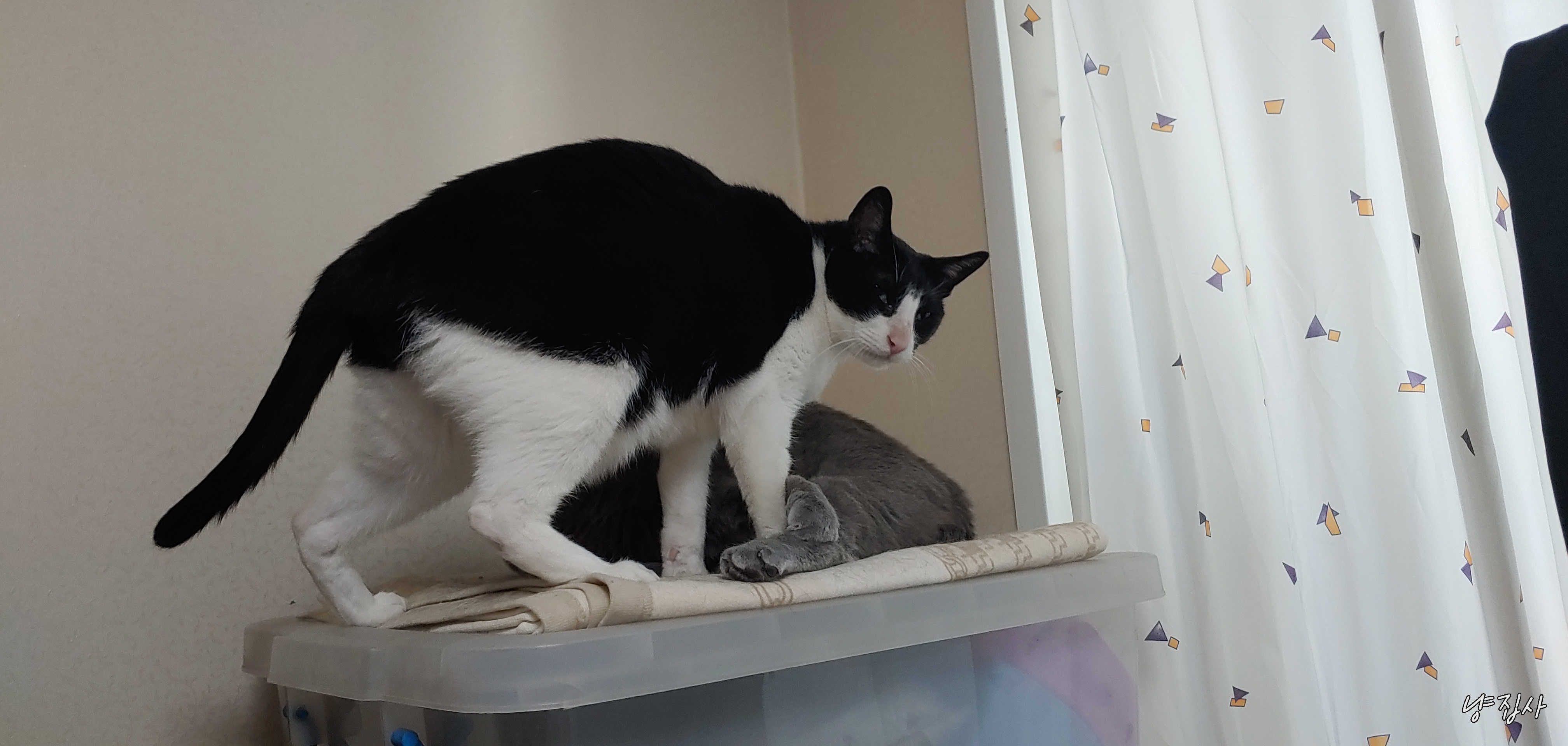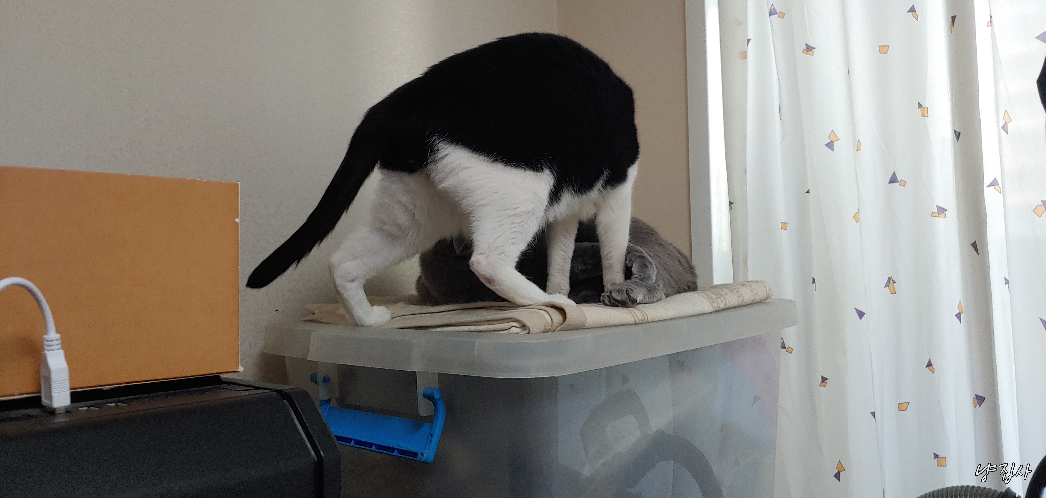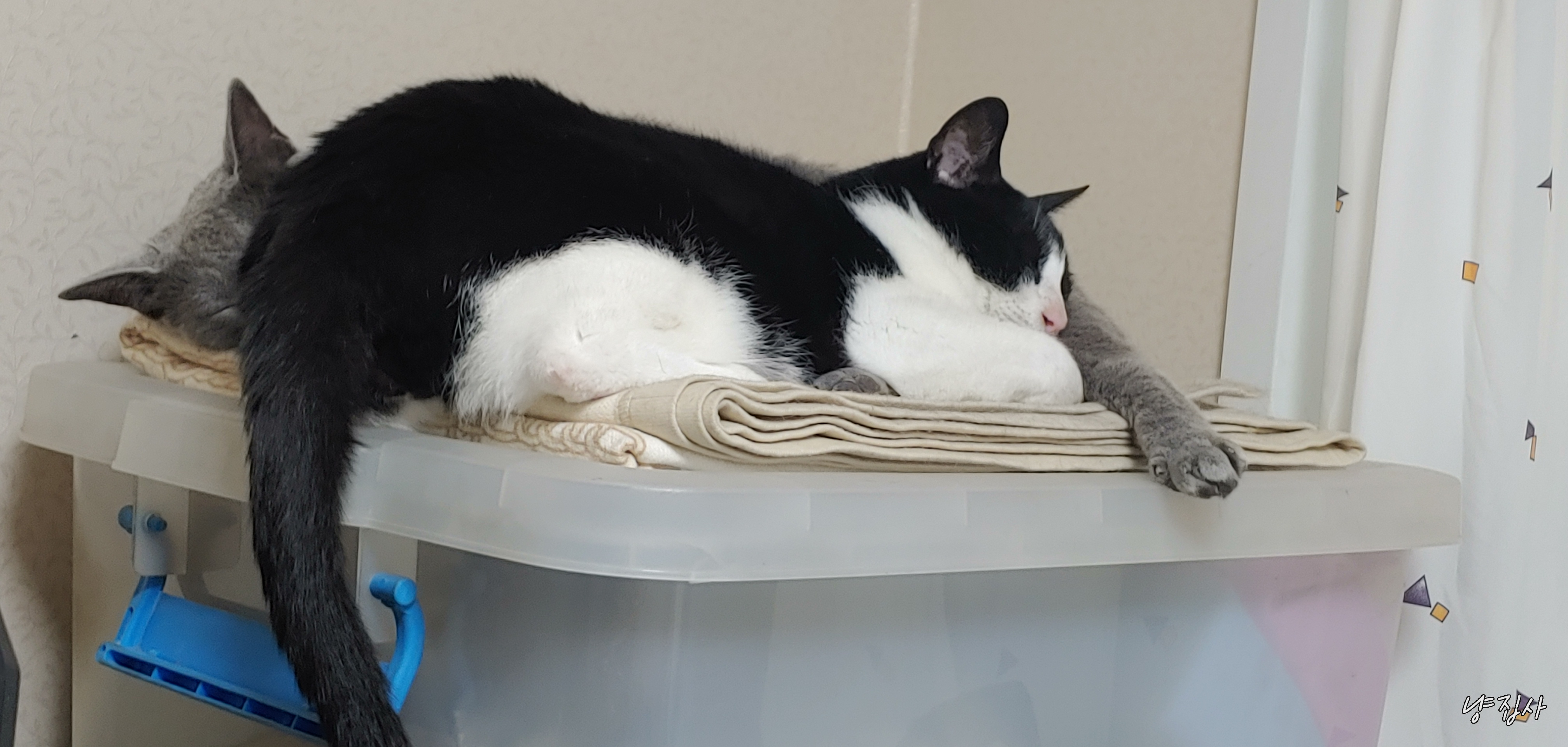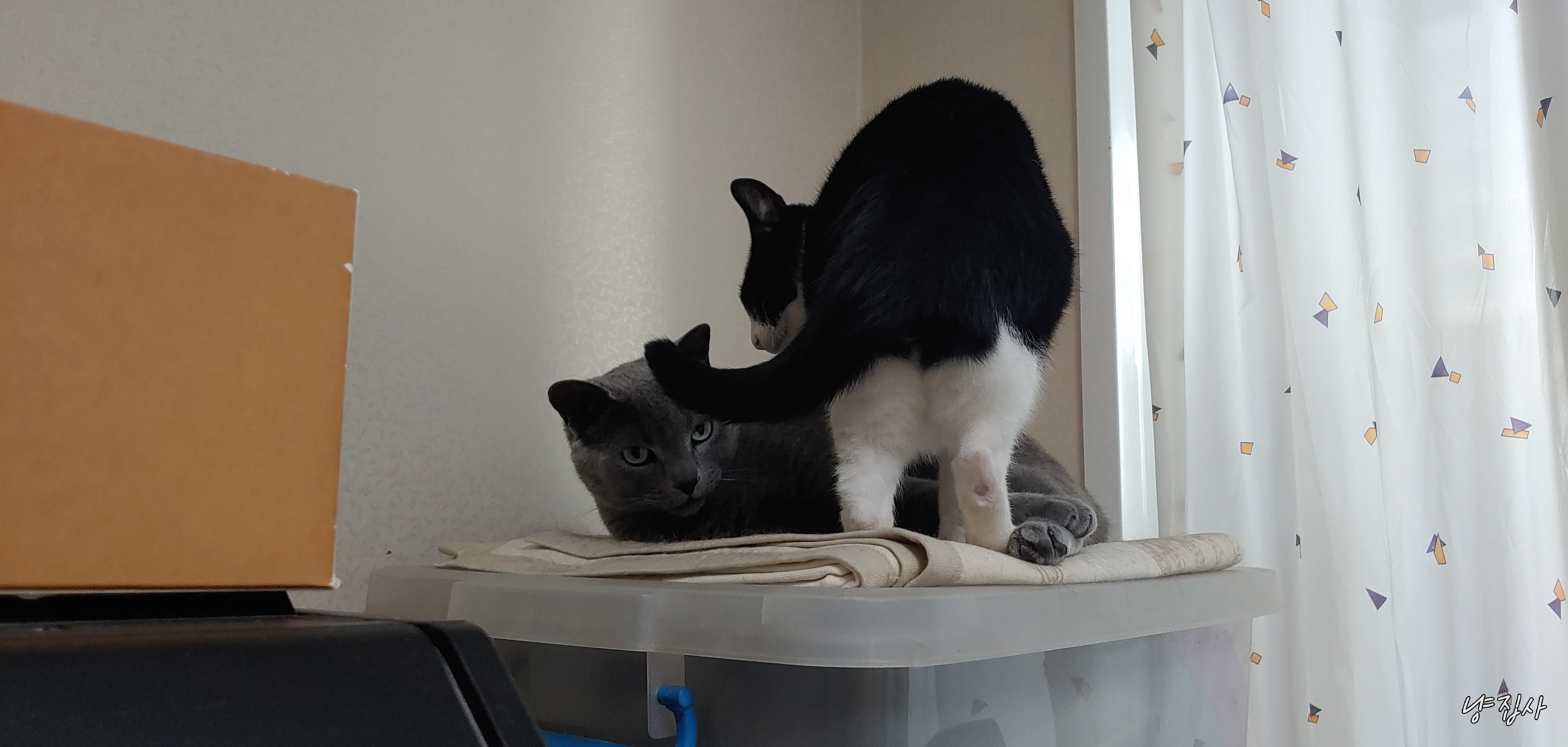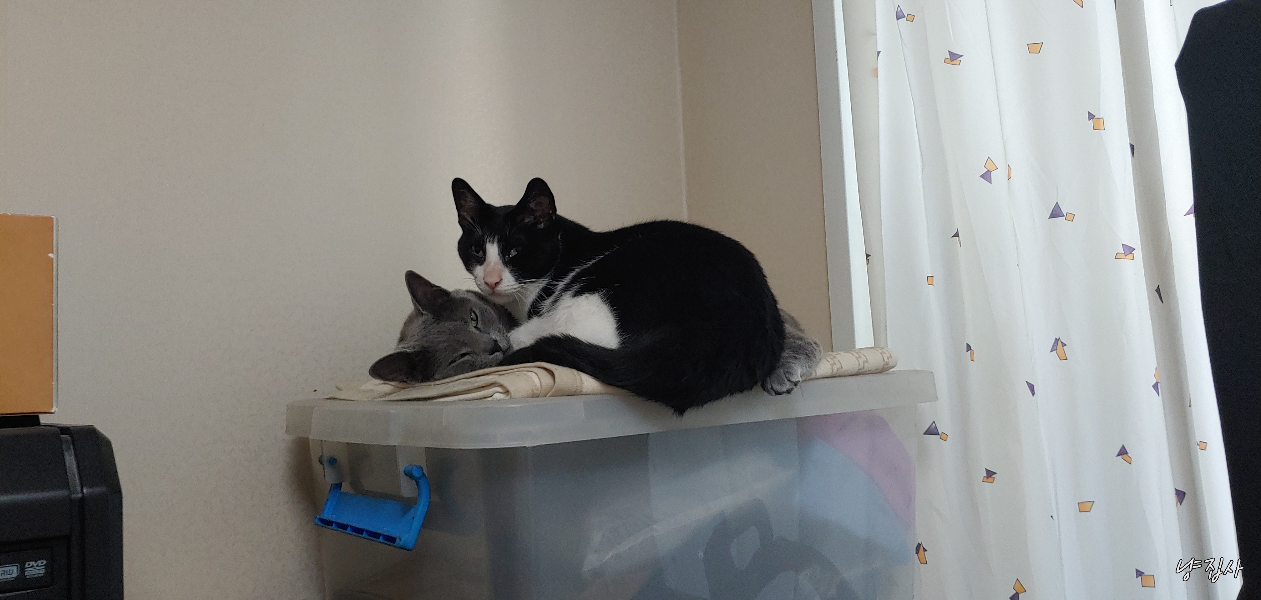 어떻게 2마리다 같은 공간에 털푸덕 누워서 생활하게 된 듯하다.