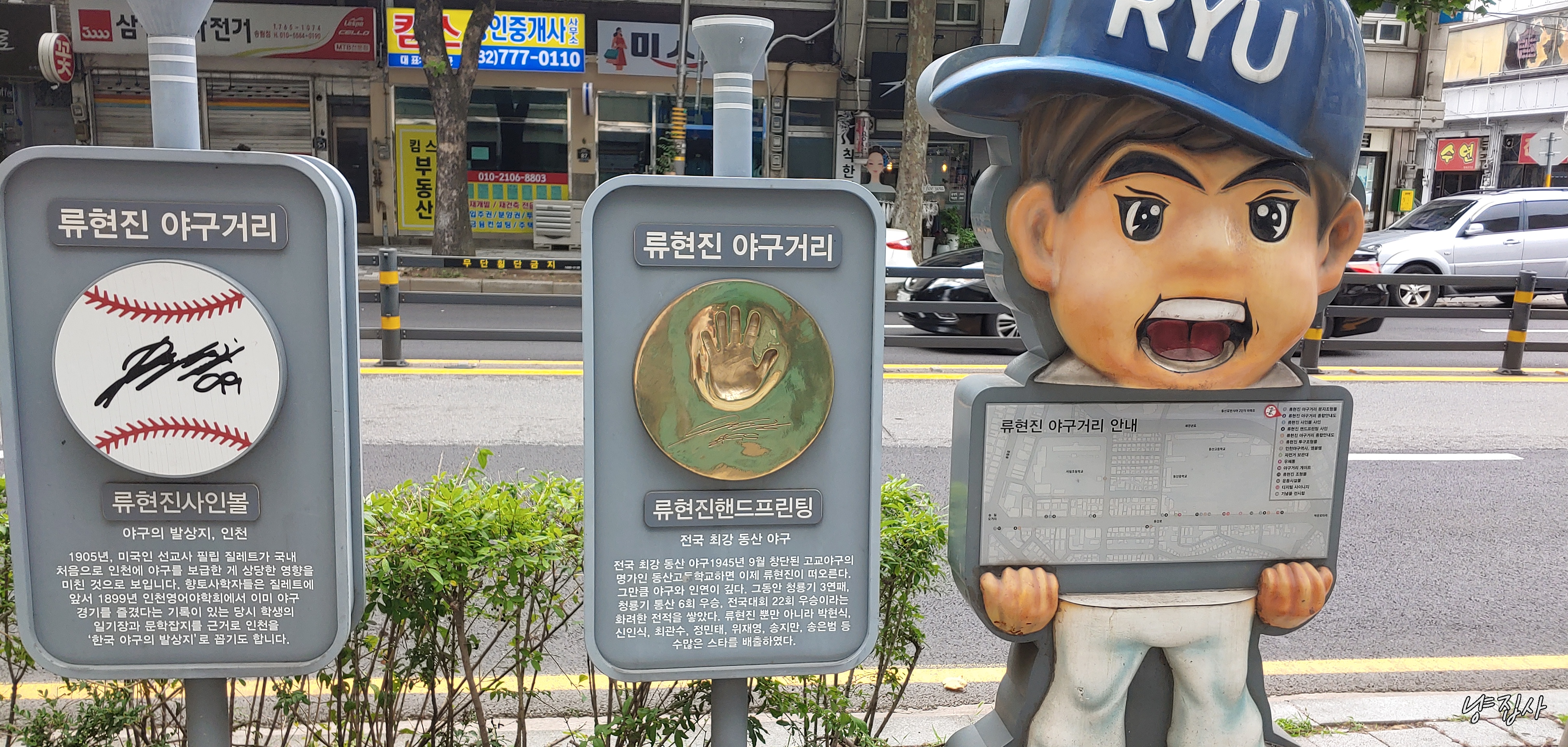동산고 옆으로 류현진 거리가 있구나