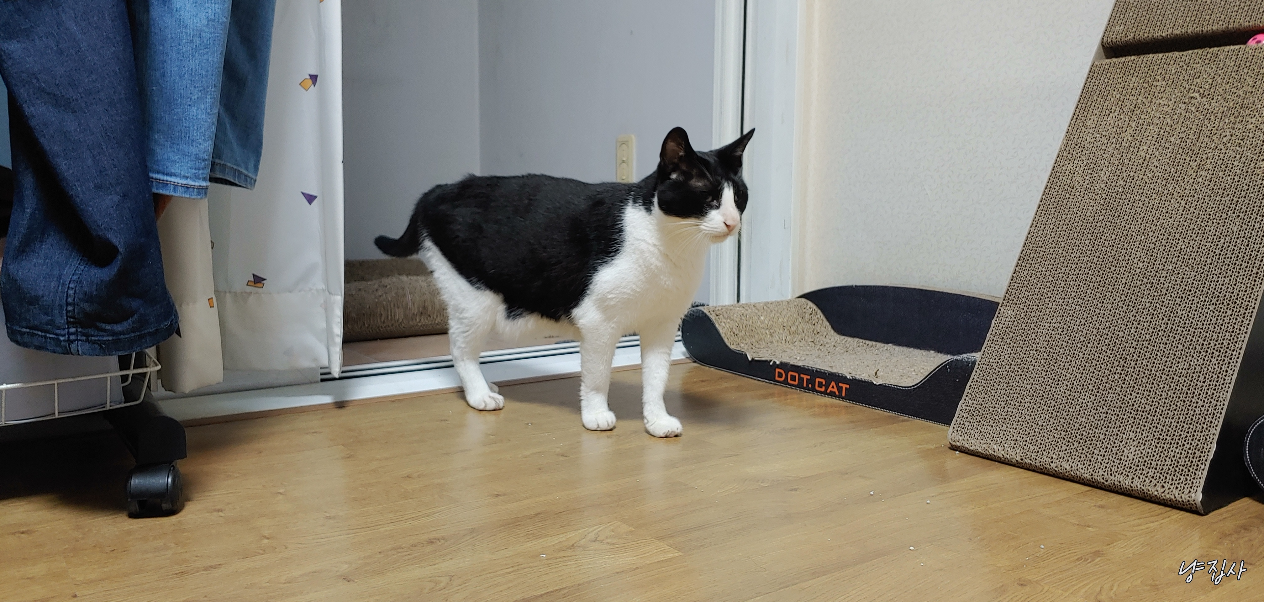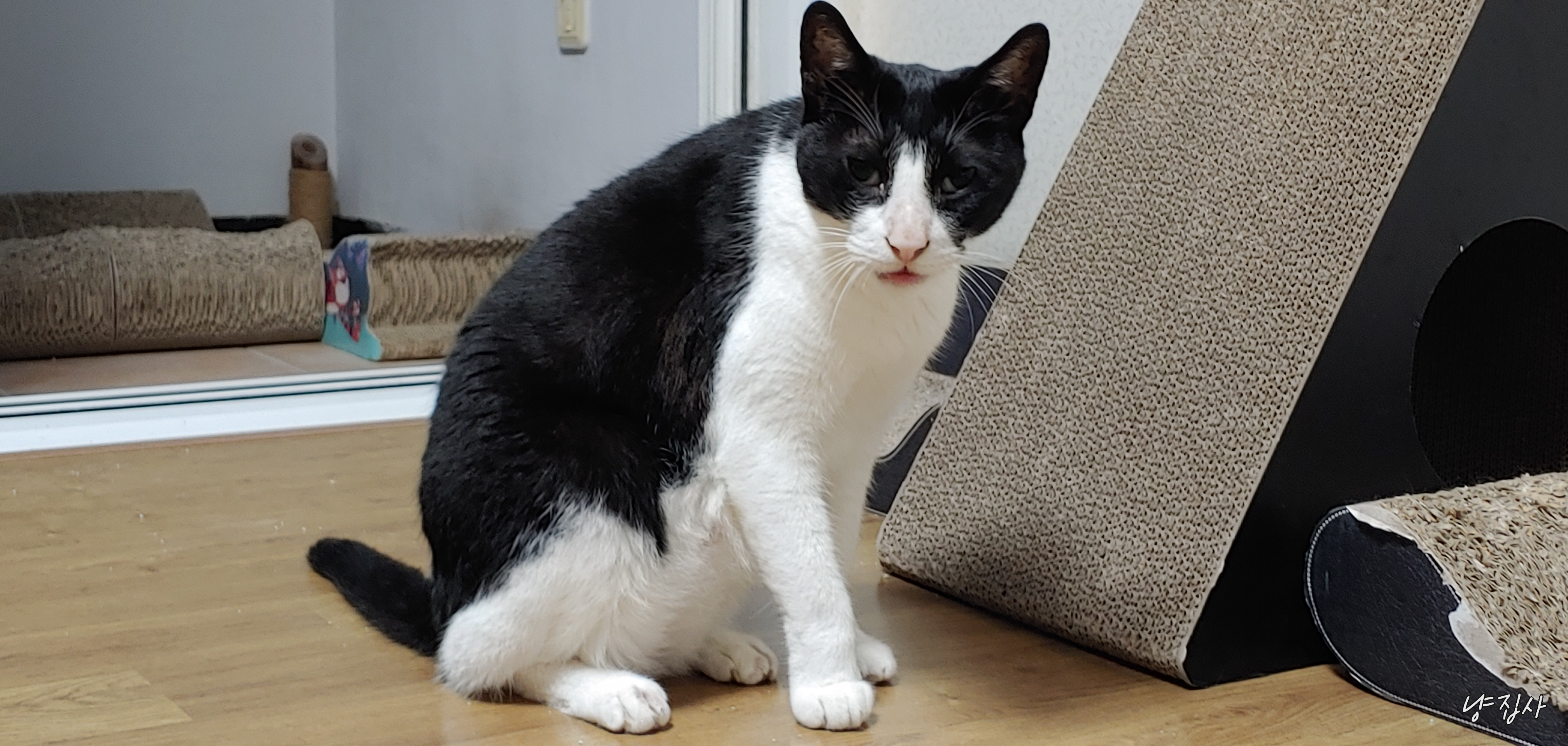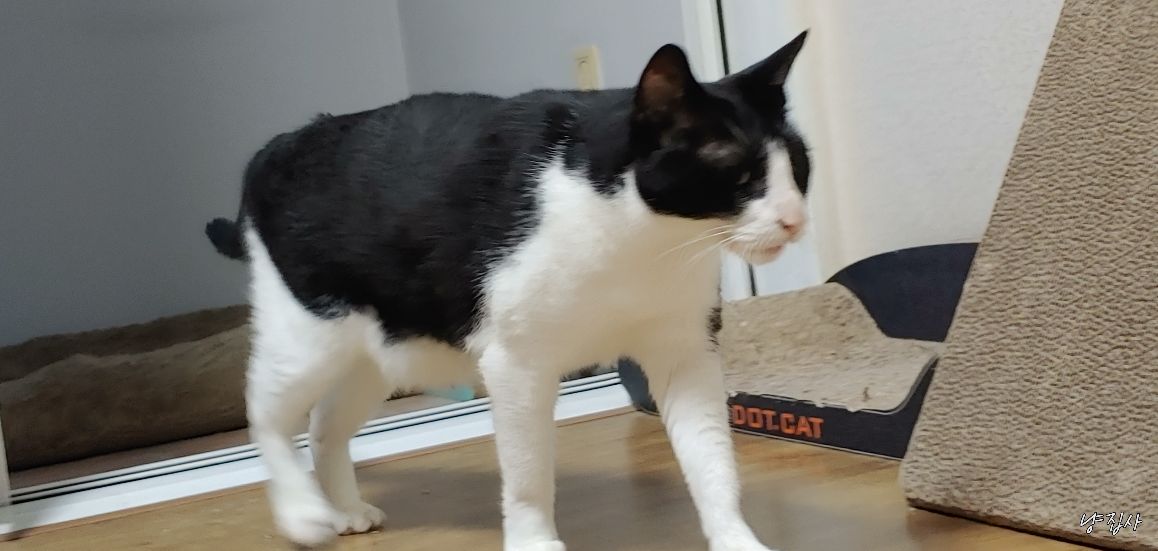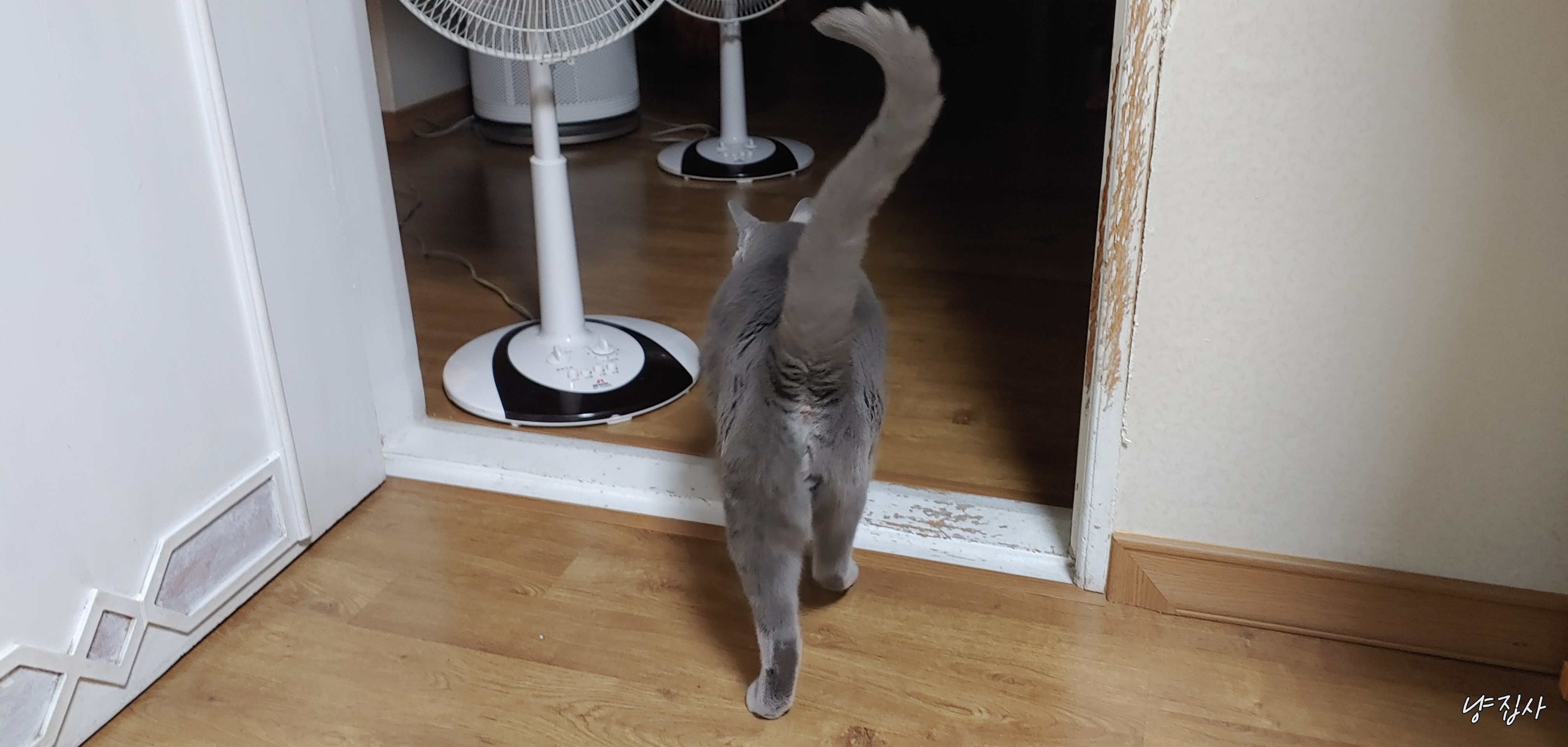 사랑이가 냐냥 하더니 방 밖으로 나갔다...