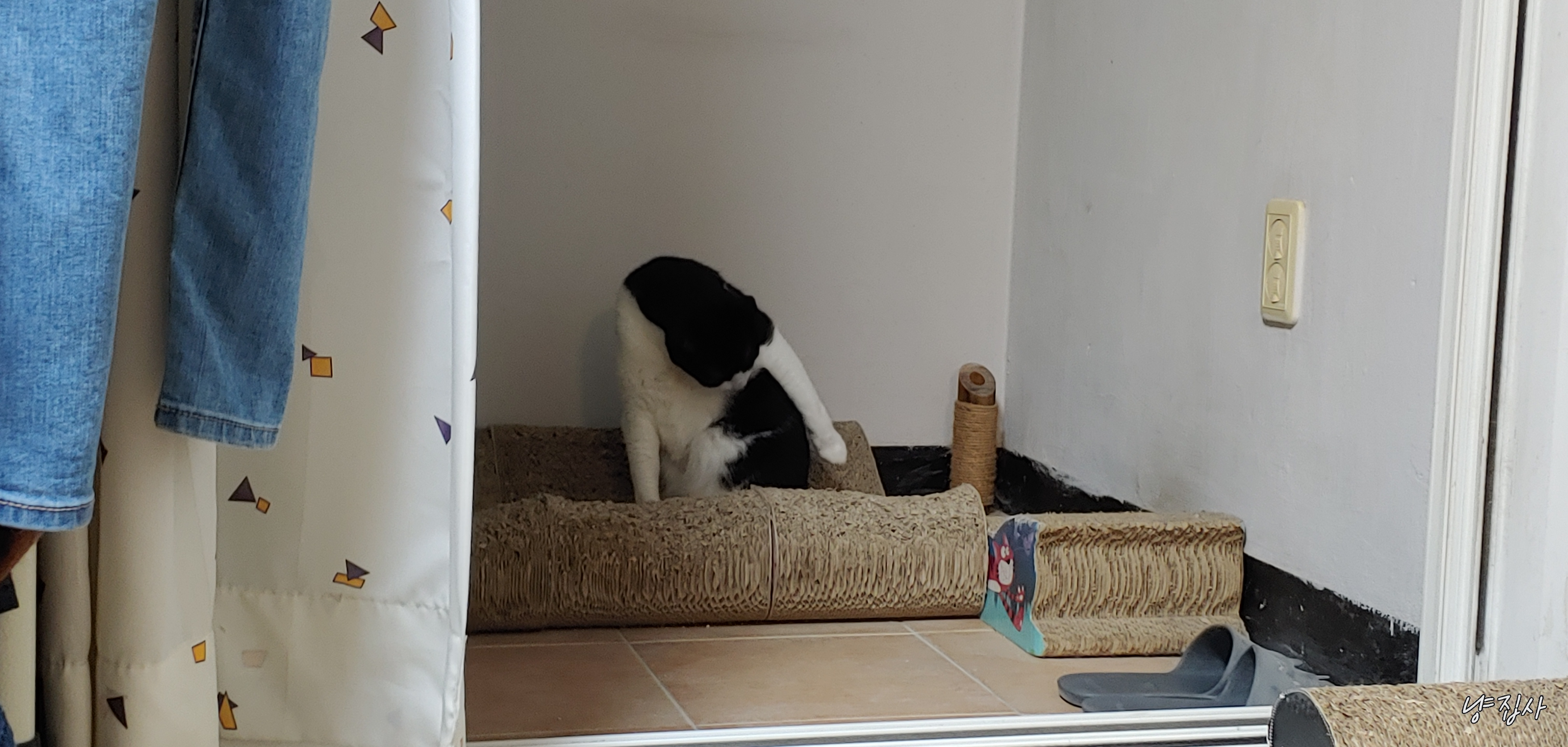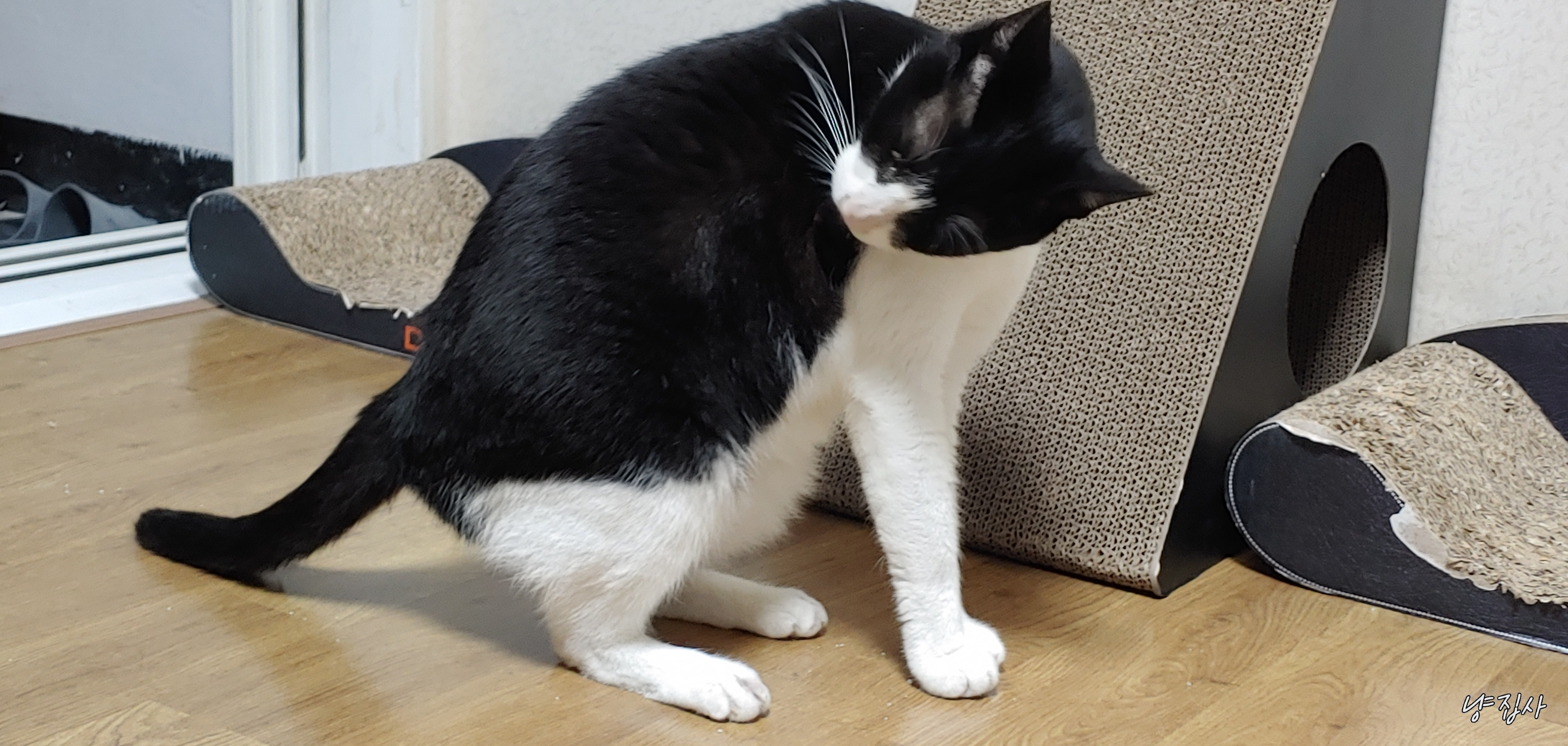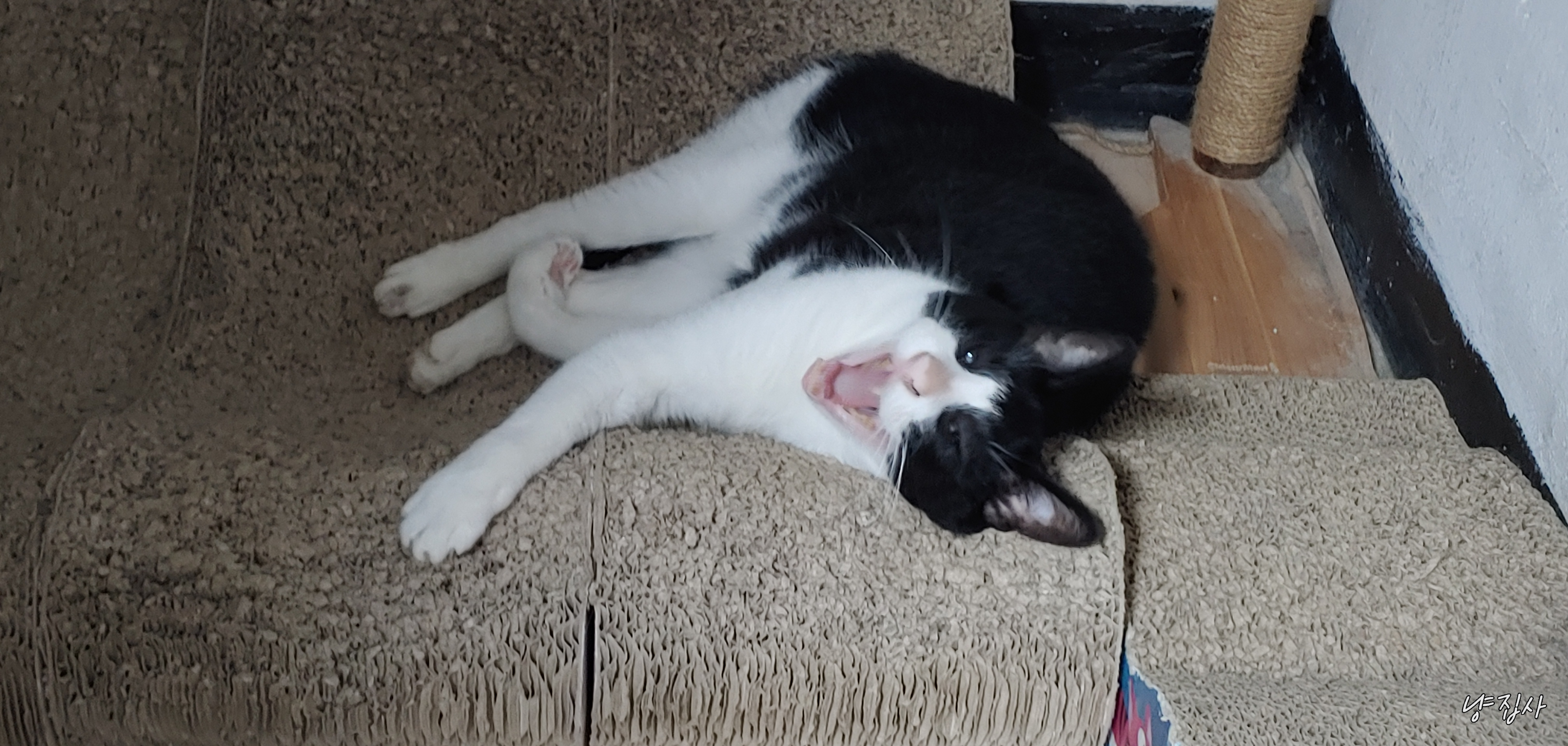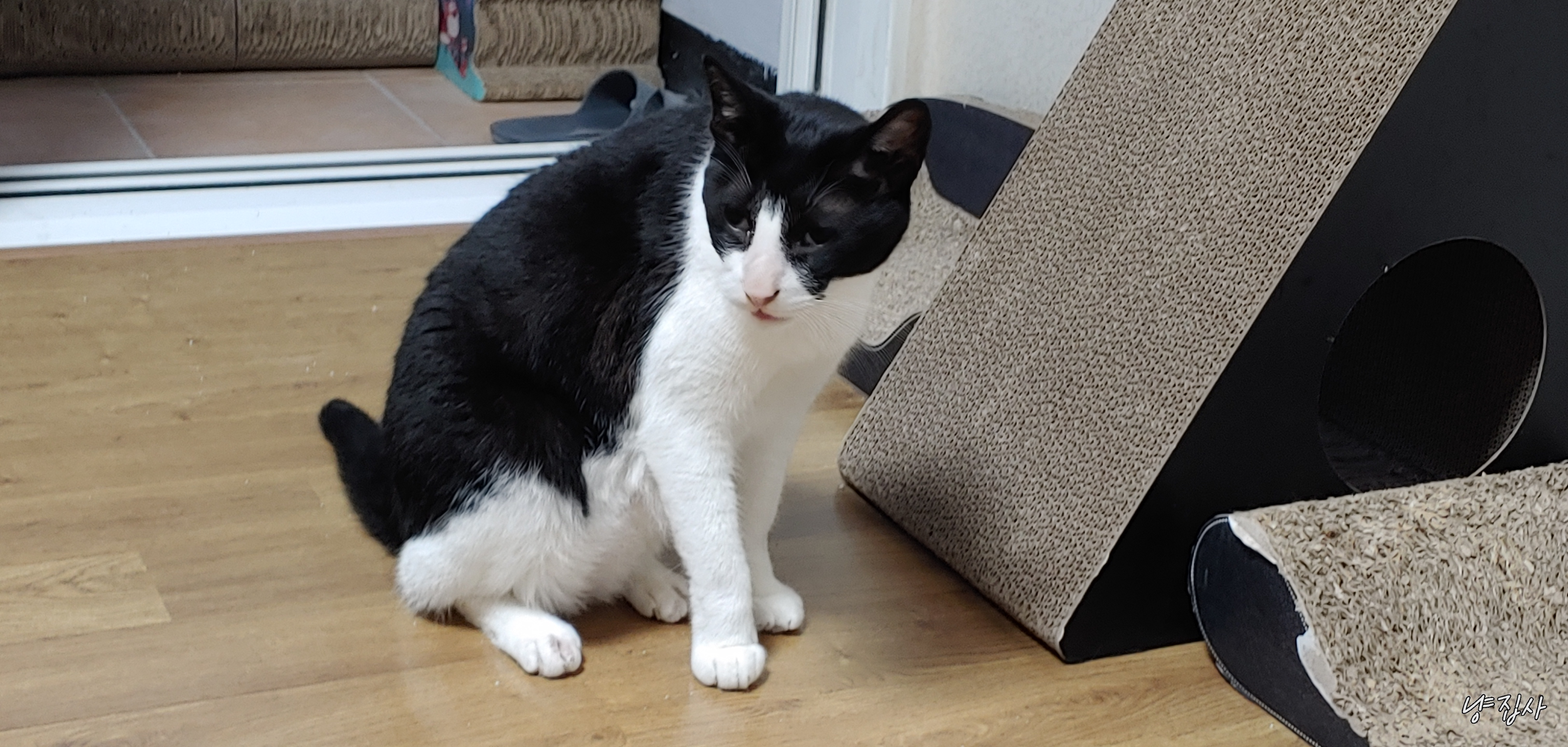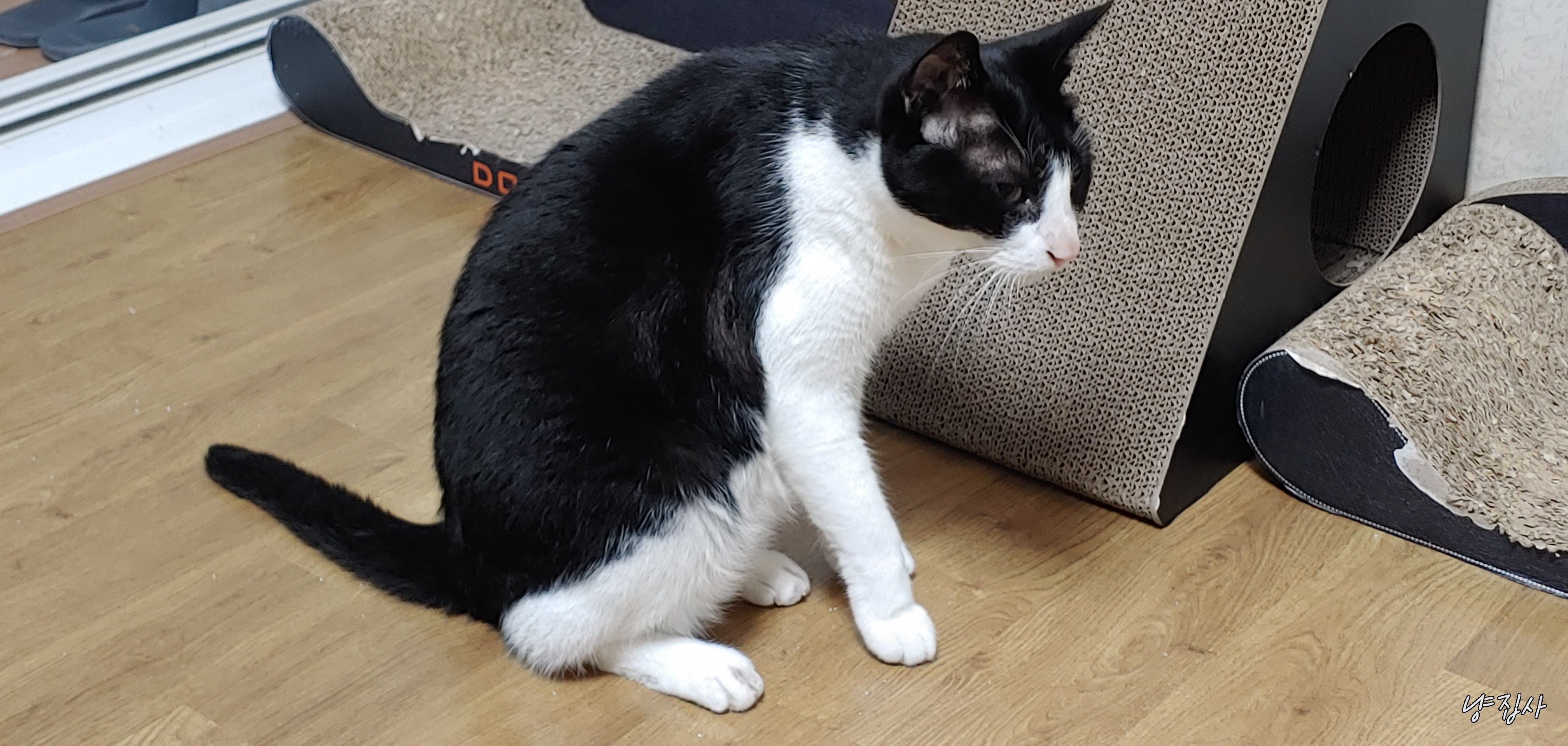 사랑이가 냐냥 하더니 방 밖으로 나갔다...