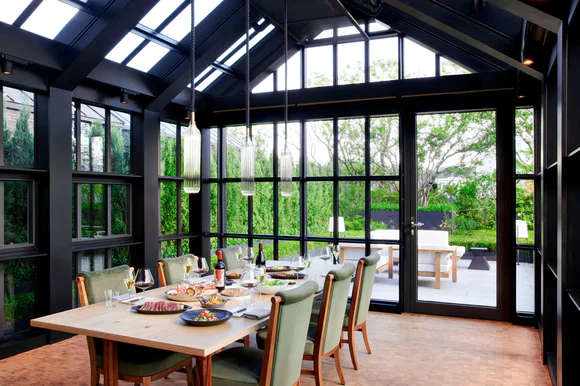 오른쪽으로는 정원의 풍경을 그대로 느낄 수 있도록 글래스 하우스 형식으로 디자인된