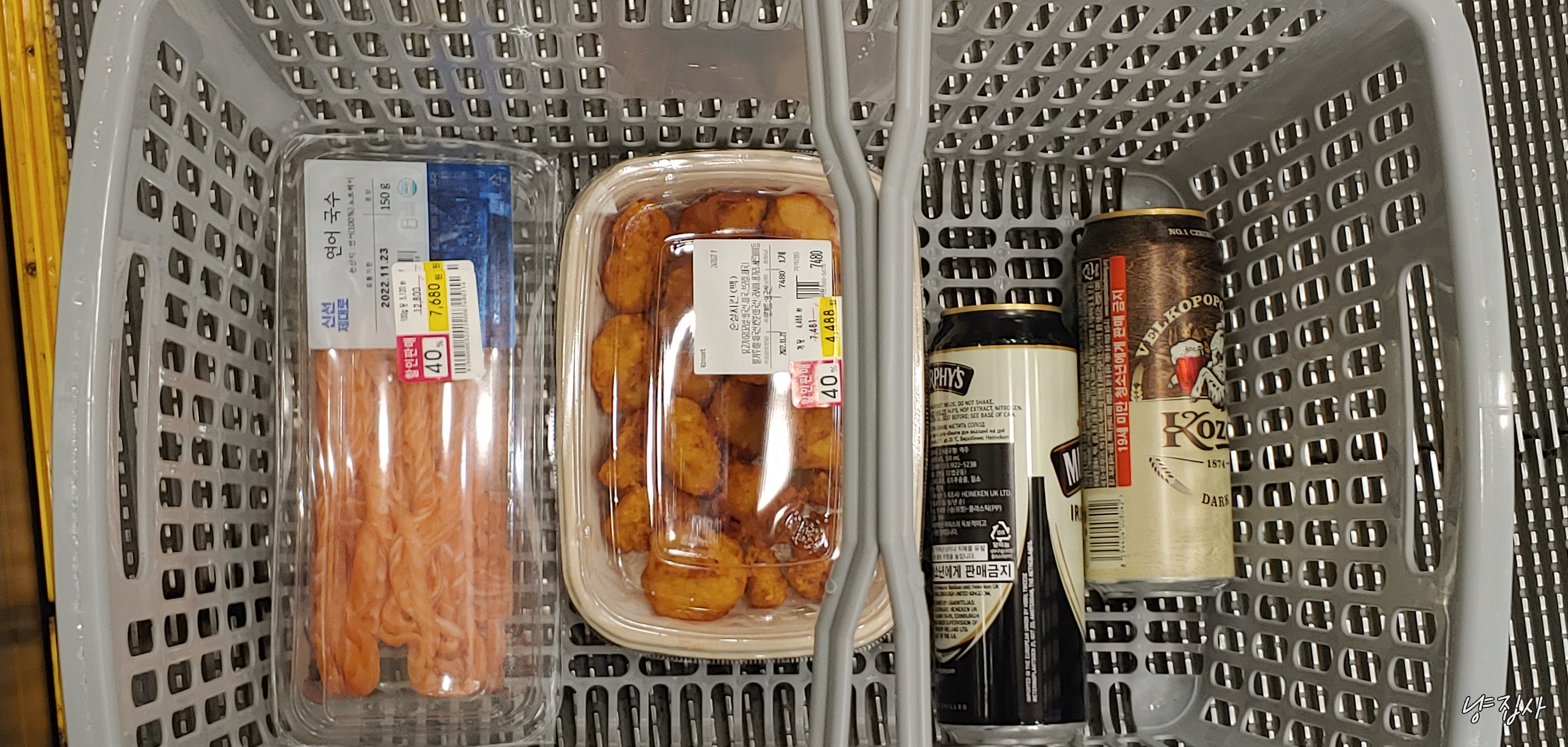 이마트 식품 코너를 한바퀴 돌았을 때였다.